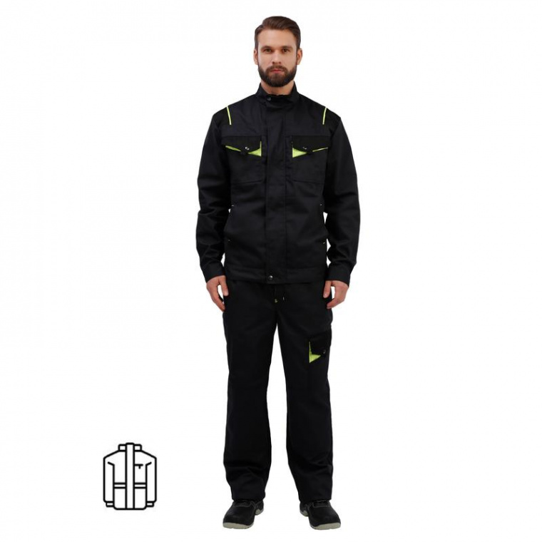 Спецодежда летняя куртка мужская л27-КУ (размер 44-46, рост 182-188) темно-серого цвета с черными и лимонными вставками. Куртка изготовлена из смесовой ткани (80% хлопок, 20% полиэстер) плотностью 260 г/кв.м. Куртка прямого силуэта, с центральной застежкой-молнией закрытая защитной планкой. Так же оснащена 2-мя боковыми карманами, 2-мя нагрудными карманами, по кокетке лимонный кант. Куртка рекомендована к использованию в промышленности (автомобильной, авиакосмической), логистике, транспорте, сельском хозяйстве. Куртка обеспечивает защиту от производственных загрязнений. Соответствует ТР ТС 019/2011.