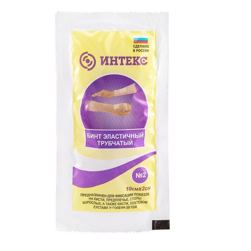 Бинт №2 трубчатый 'ИНТЕКС' используют для фиксации повязок. Бинты обладают хорошей эластичностью, поэтому растягиваются до нужных размеров и надежно обхватывают место перевязки. Индивидуальная упаковка бинтов 'ИНТЕКС' изготавливается из пленки ПВХ и содержит маркировку на каждой штуке, упаковка водостойкая и защищает бинты от повреждений при транспортировке и хранении. 1 упаковка включает в себя 20 штучных бинтов. Бинт № 2 предназначен для фиксации сухих и влажных повязок на кисти, предплечье, стопе взрослых. А также кисти, локтевом суставе и голени детей. По всей длине бинтов №2 нанесена маркерная полоса бежевого цвета, которая предназначена для правильной ориентации бинта по оси при наложении его на тело, с целью предотвращения перекручивания бинтов при их использовании. ПОРЯДОК ИСПОЛЬЗОВАНИЯ: Перед вскрытием убедитесь, что срок годности трубчатого бинта №2 не просрочен, если срок годности хороший - вскройте разовую упаковку. Достаньте из упаковки трубчатый бинт 'ИНТЕКС' №2 и аккуратно натяните его на место, где закреплена фиксируемая салфетка или повязка. После чего, займитесь распределением трубчатого бинта №2 по окружности места травмы так, чтобы осевые нити сетки были прямыми. Следите за маркерной полосой на поверхности бинта, она не должна перекручиваться.