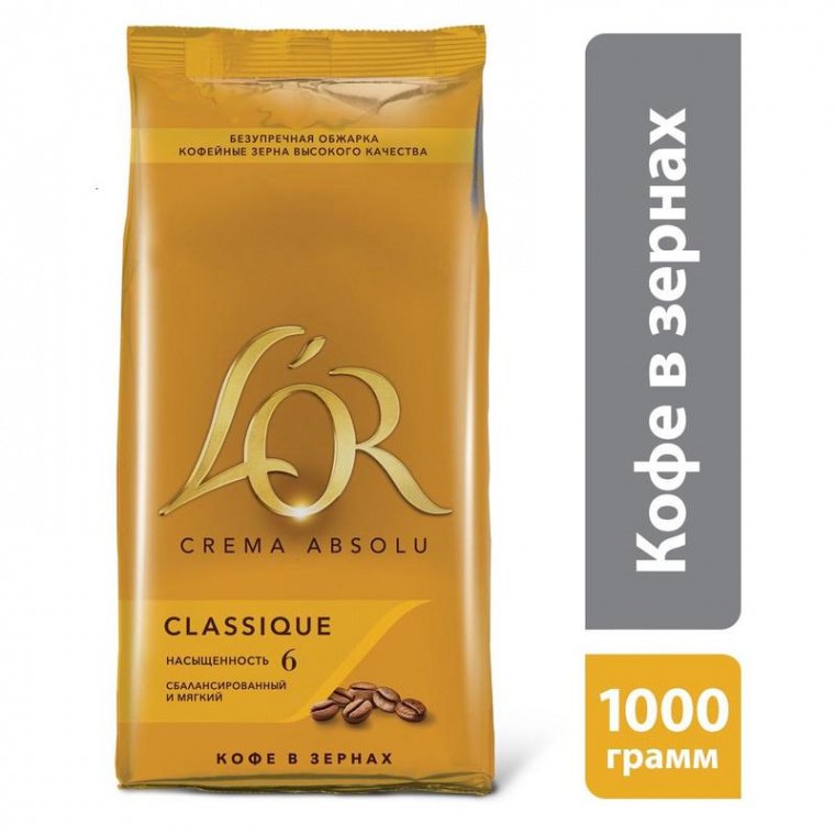 Кофе в зернах L’or Crema Absolu Classique — это «золото высшей пробы» в кофейном эквиваленте (L’or означает «золото» по-французски). Благородный, интенсивный, но в то же время мягкий вкус отборных зерен арабики и робусты, притягательный аромат и бархатистое послевкусие подарит вам L’or Crema Absolu Classique.