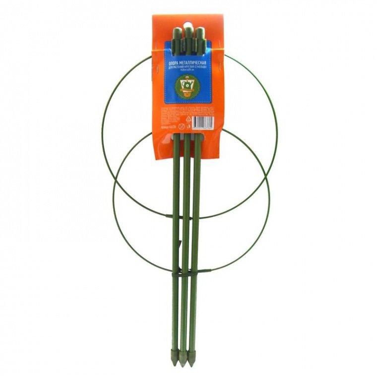 Опора для поддержки всех видов комнатных растений. Опора оснащена двумя кольцами диаметром 20 и 18 см, что позволяет зафиксировать стебли и листья растения в необходимом Вам месте и по высоте. Имеет усиленные ножки диаметром 8 мм. Универсальная конструкция. Подходит для всех видов комнатных растений малого и среднего размера. Размер изделия: 20×1,5×40 см.
