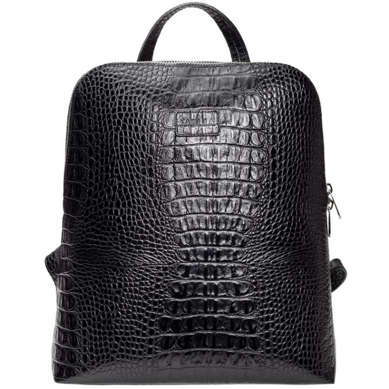 Женский рюкзак Fabula выполнен из натуральной кожи черного цвета. Закрывается на металлическую молнию. Внутри — вместительное основное отделение, дополнительное отделение. Два накладных кармана и карман для ручки или карандаша, а также глубокий карман на молнии. На внешней оборотной стороне — вертикальный карман на молнии и два регулируемых плечевых ремня. Цвет фурнитуры — никель. Вмещает формат A5. Размер: 26×30.5×13 см.