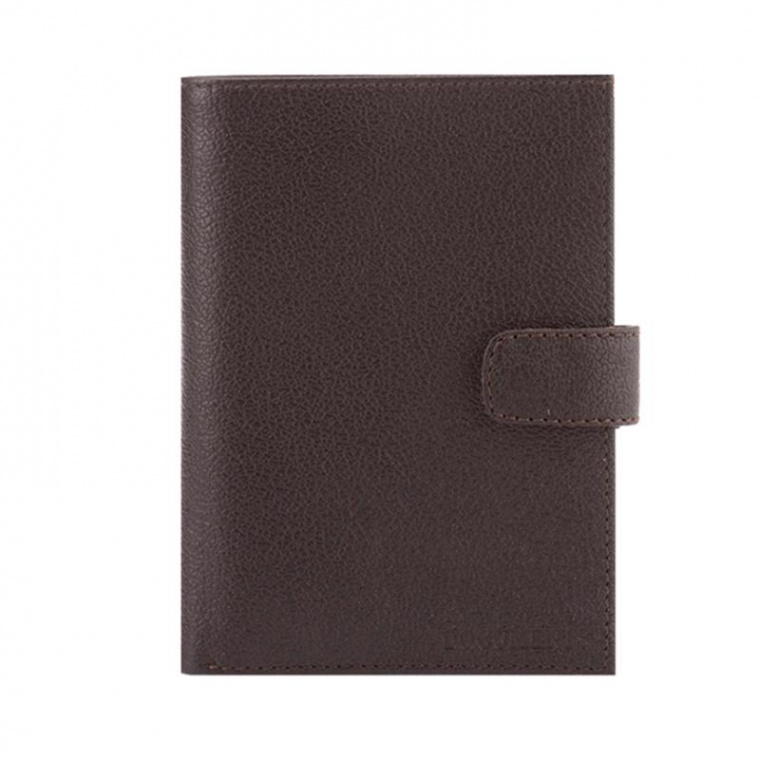 Бумажник водителя Fabula выполнен из натуральной кожи коричневого цвета. Закрывается хлястиком на кнопку. На внутреннем развороте находятся: отделение для паспорта на кнопке, два отделения для купюр, два кармана из кожи, пять карманов для кредитных карт, внутренний блок для водительских документов из прозрачного пластика на шесть карманов. Цвет фурнитуры — никель. Отличительная черта — оригинальная фактурная кожа, тиснение «Documents».