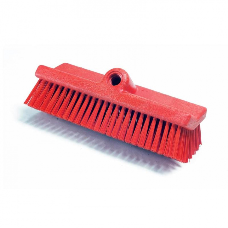 Изогнутое основание делает щетку универсальным и удобным инструментом для мытья пола, в том числе под оборудованием, у стен и плинтусов. Материал инвентаря: полибутилентерефталат. Материал щетины: полиэстер. Ширина щетки: 25.4 см. Длина щетины: 4.5 см. Цвет: красный. Соответствует требованиям ХАССП.