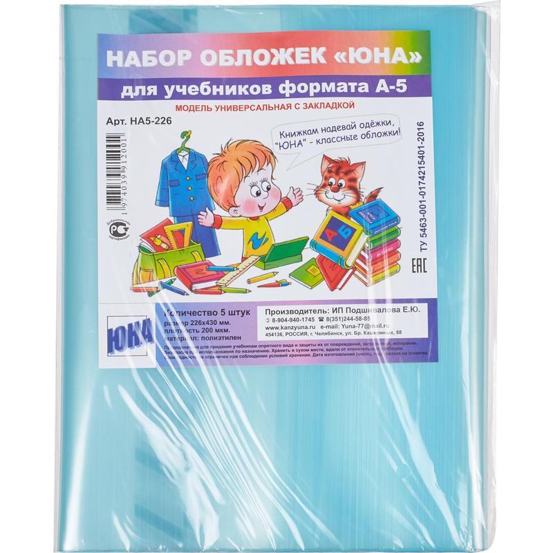 Обложки для учебников универсальные 5 штук в упаковке (226х430 мм, 200 мкм)