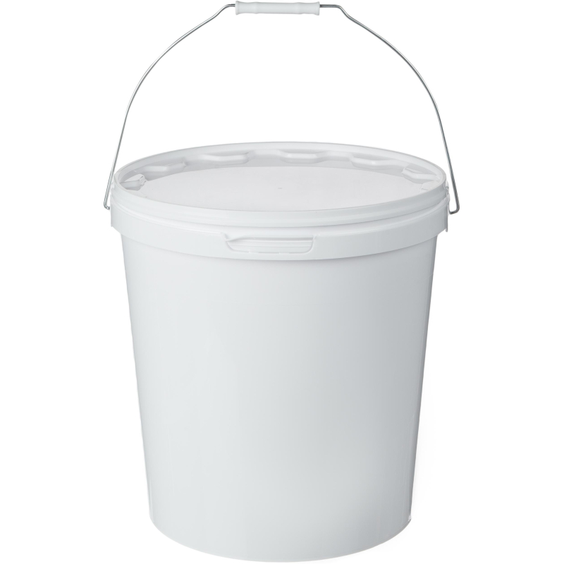 Герметичное ведро с крышкой из полипропилена круглой формы белого цвета. Металлическая ручка. Используется для расфасовки, хранения и транспортировки пищевых и непищевых продуктов. Верхний диаметр - 328 мм. Нижний диаметр - 279 мм. Высота - 333 мм. Объем - 20 литров.