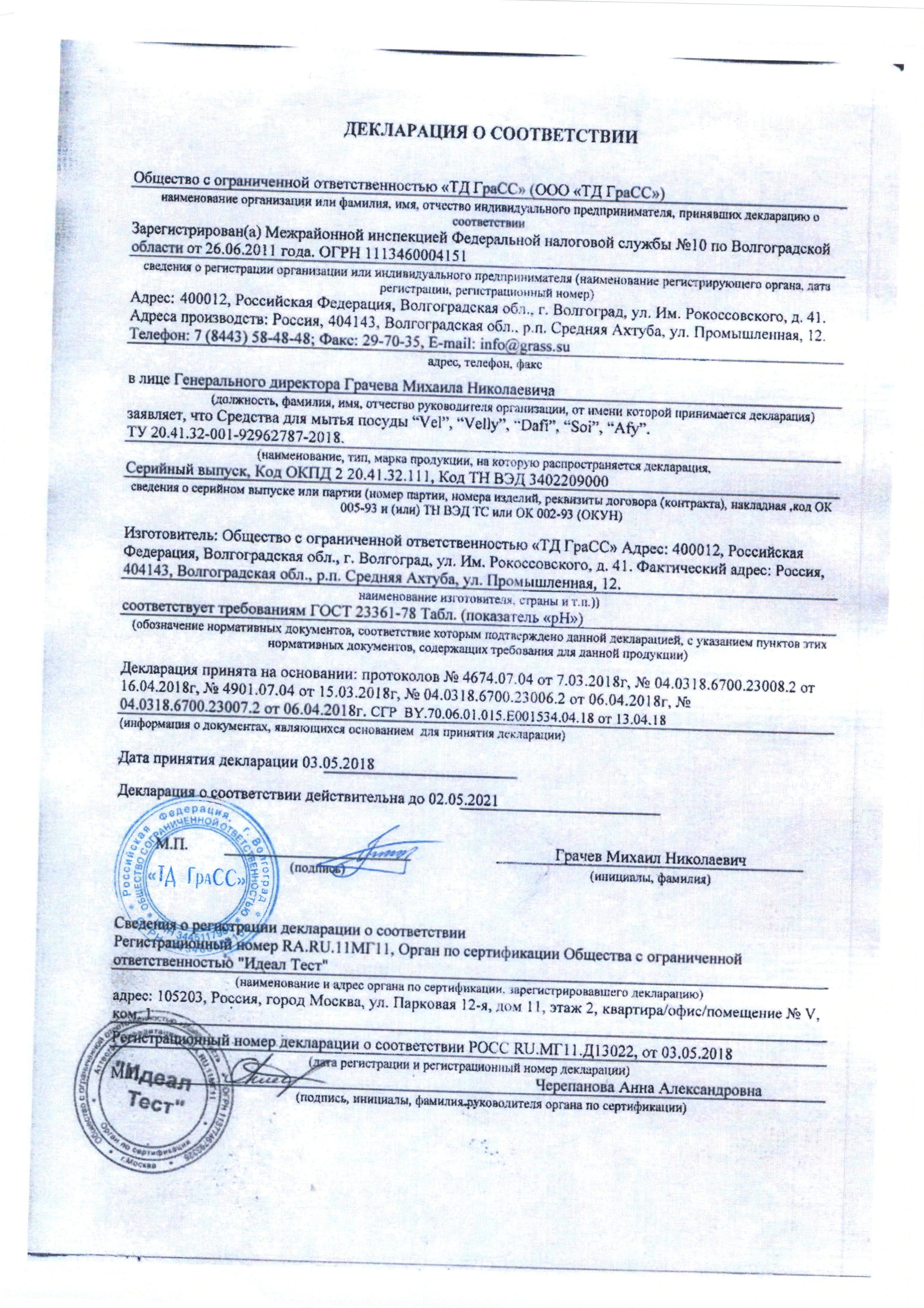 Средство для мытья посуды. Всего одна капля средства создает обильную пену, способную безупречно чисто вымыть посуду. Средство эффективно удаляет жир и остатки пищи с поверхности посуды, как в горячей, так и в холодной воде. Не вызывает раздражения кожи рук.