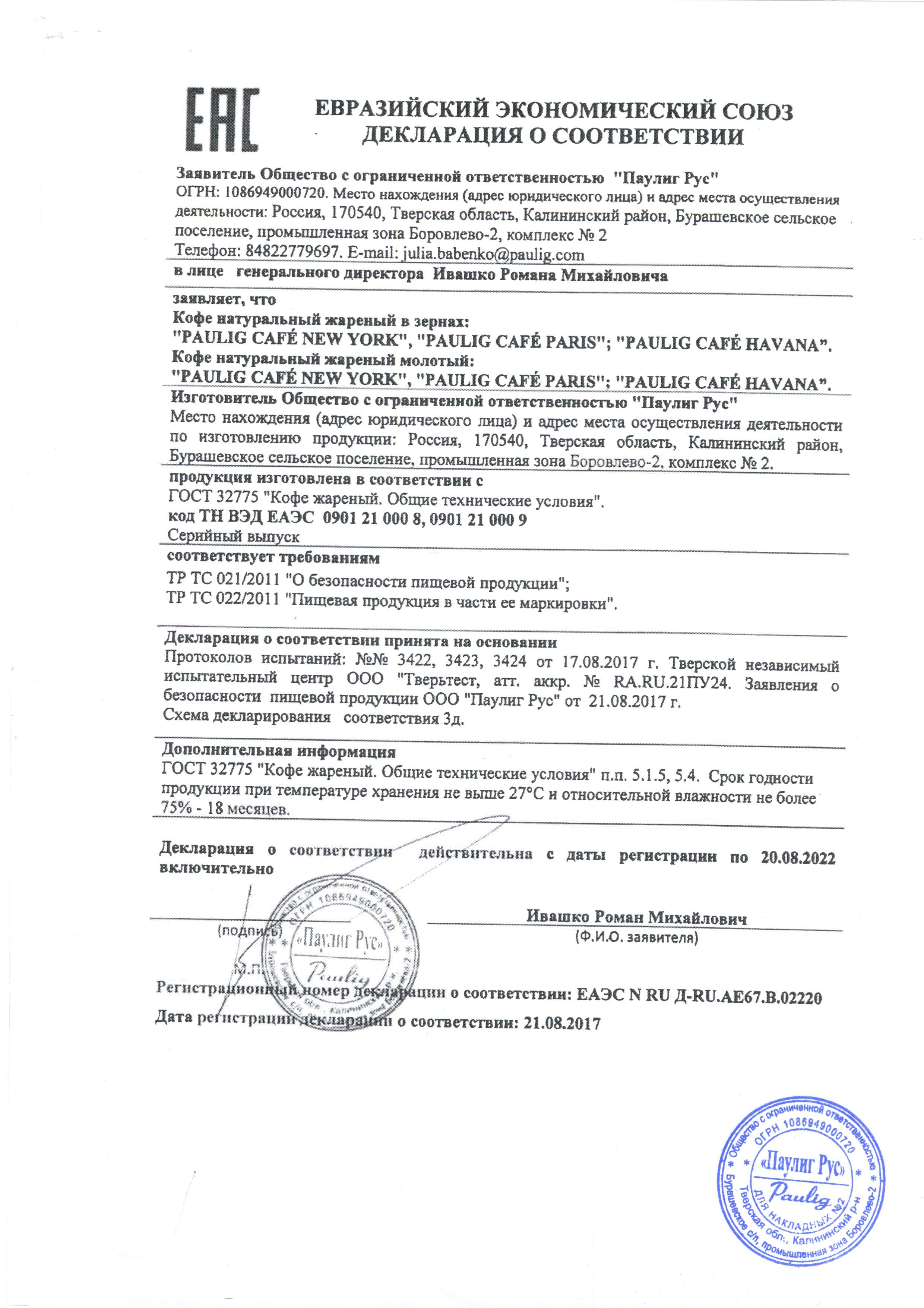 Кофе Paulig Arabica в зернах, 1 кг,87560