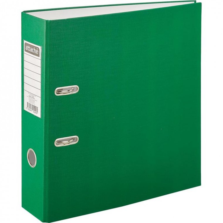 Папка-регистратор с арочным механизмом Attache изготовлены из плотного картона, с внешней стороны обтянута бумагой зеленого цвета. На корешке шириной 80 мм есть карман с этикеткой и кольцо для удобного захвата. Формат А4+. Арочный механизм произведен в Чехии. Папка-регистратор вмещает до 600 листов стандартной плотности.
