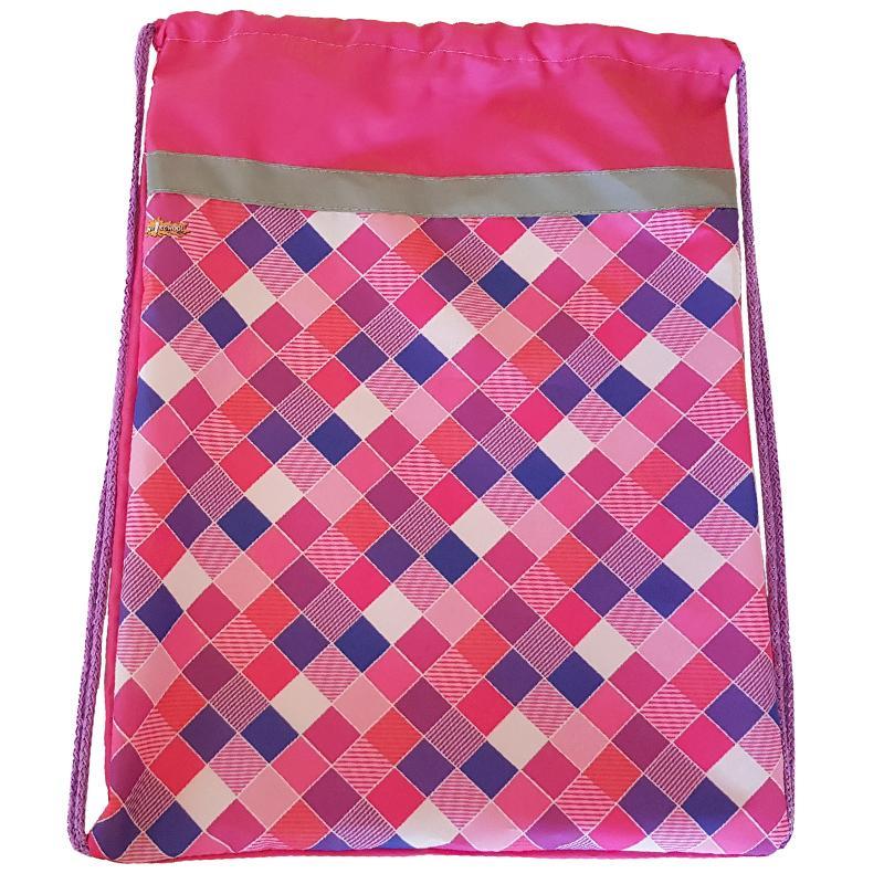 Мешок для обуви №1 School Клетка розовая 370x470 со светоотражателем,МСО-5с