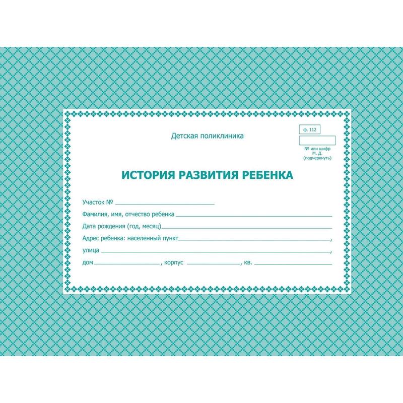 Медицинская карта истории развития ребенка бирюзовая А5 по форме N112/У