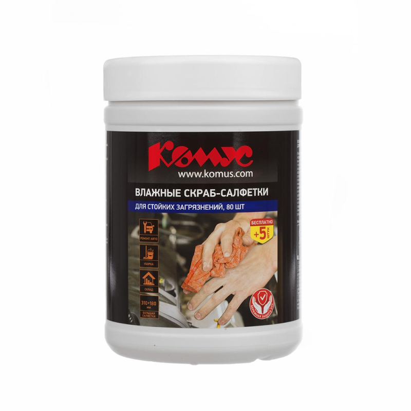 Износоустойчивые, не царапающие салфетки серии 'СУПЕР-СКРАБ' с уникальными абразивными полипропиленовыми волокнами, пропитанные высококачественным чистящим составом предназначены для глубокой бережной очистки рук и поверхностей от сильных загрязнений. Большой размер салфетки (310x180 мм). В банке 80 штук салфеток + 5 штук в подарок. Благодаря специальным нитеобразным абразивным волокнам и эффективному чистящему составу салфетки быстро и с минимальными усилиями удаляют строительные, жировые и масляные загрязнения, остатки смазок, клеев, герметиков, воска, смол, битумных и антикоррозийных составов, топлива, сажи, следы от шин и каблуков, никотина, ручек и фломастеров, других трудно удаляемых веществ, оставляя при этом ощущение чистоты и свежести. Успешно очищают белую подошву обуви. Удобны в применении, идеальны в условиях отсутствия воды. Рекомендуются для удаления стойких загрязнений с рук и поверхностей в автомобиле, офисе, на производстве и дома. Влажные скраб-салфетки отвечают современным санитарно-гигиеническим нормам, содержат смягчающие и увлажняющие компоненты, препятствующие раздражению кожи рук.
