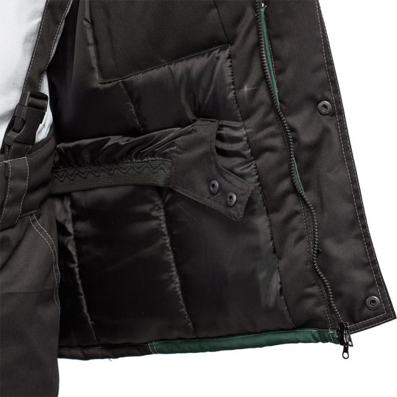 Спецодежда зимняя, костюм мужской модели з39-КБР. Состоит из куртки и брюк. Размер 48-50, рост 182-188. Изготовлен из смесовой ткани - 65% полиэстер, 35% хлопок. Плотность ткани - 210 г/кв.м. Утеплитель - синтепон, плотностью - 360 г/кв.м (основа) и 240 г/кв.м (руки/ноги). Технология изготовления термоскрепленного синтепона (евросинтепона) позволяет использовать данный утеплитель для создания более тонких изделий с сохранением термозащитных свойств. Важными преимуществами утеплителя являются легкость и хорошая пластичность, что улучшает подвижность в костюме. А также исключение миграции волокна через ткани верха и подкладки за счет скрепления слоев. Материал подкладки - 100% полиэстер. Светоотражающая полоса размещена на груди, спине, а также внизу брюк. Куртка прямого силуэта с центральной застежкой на молнии. Внизу рукава есть трикотажные напульсники, которые предотвращают попадание холодного ветра внутрь. Брюки имеют прямой силуэт с высоким поясом и центральной застежкой на пуговицах. Костюм обеспечивает защиту от пониженных температур и производственных загрязнений. Соответствует стандартам ГОСТ 12.4.303-2016, ТР ТС 019/2011. Коллекция зимней рабочей одежды з39 представлена комплектами с курткой и брюками.