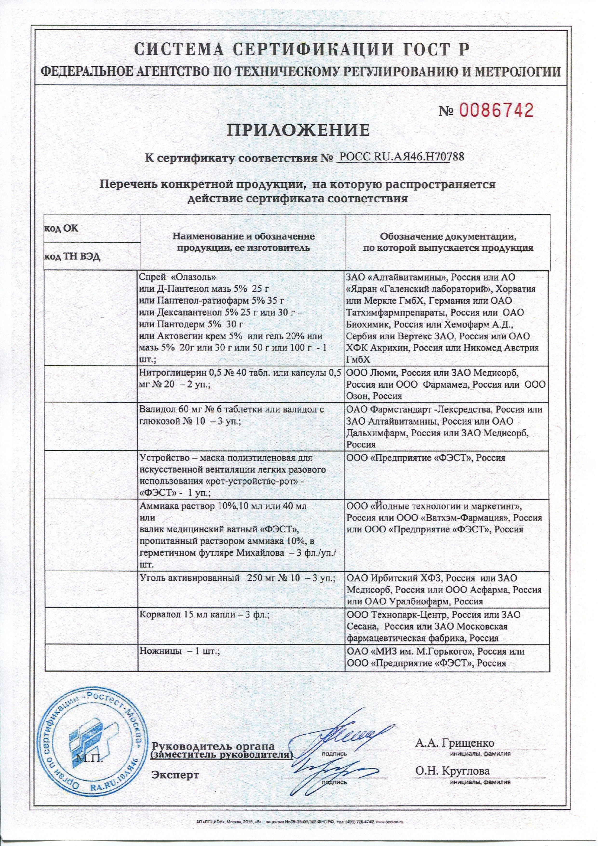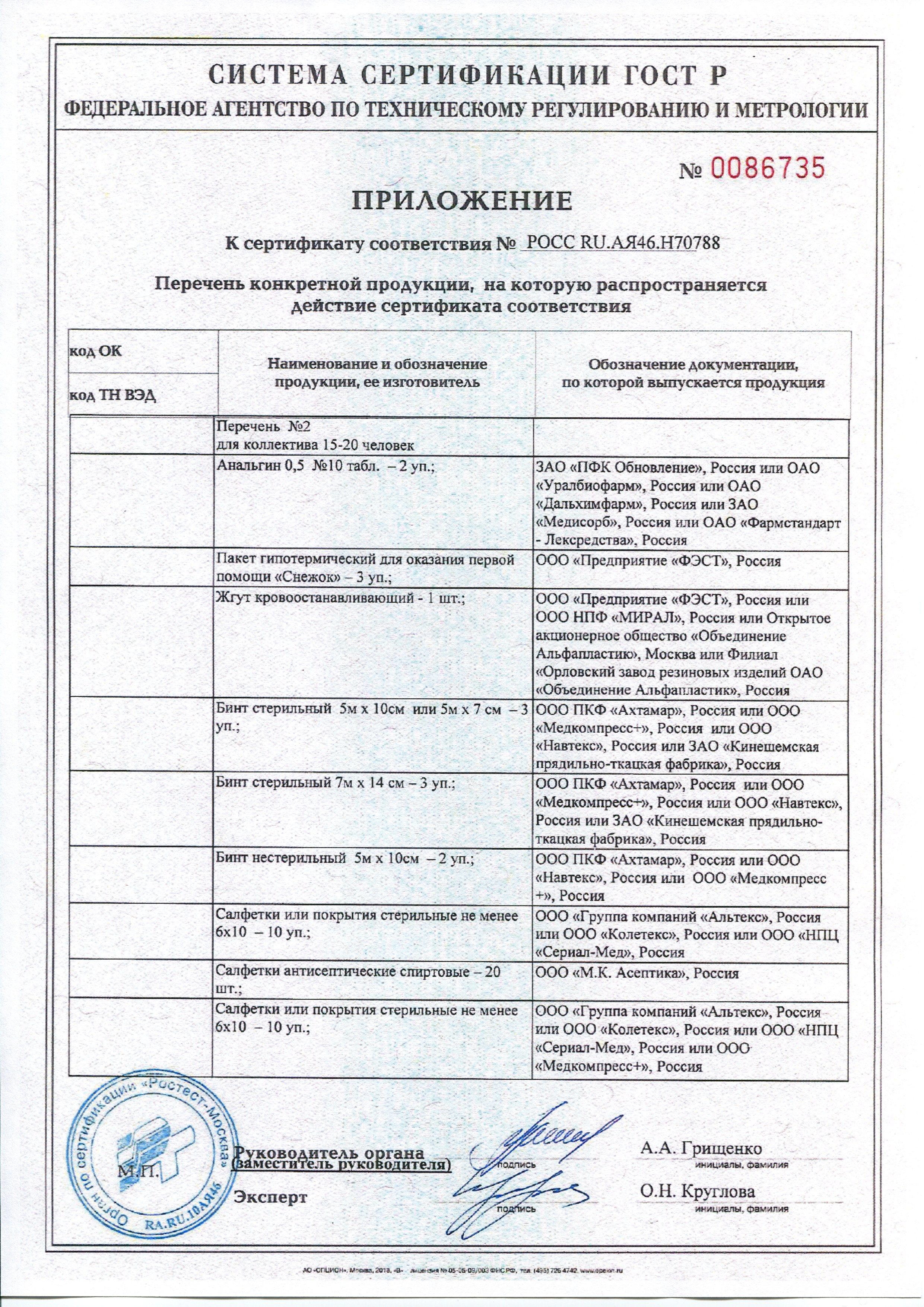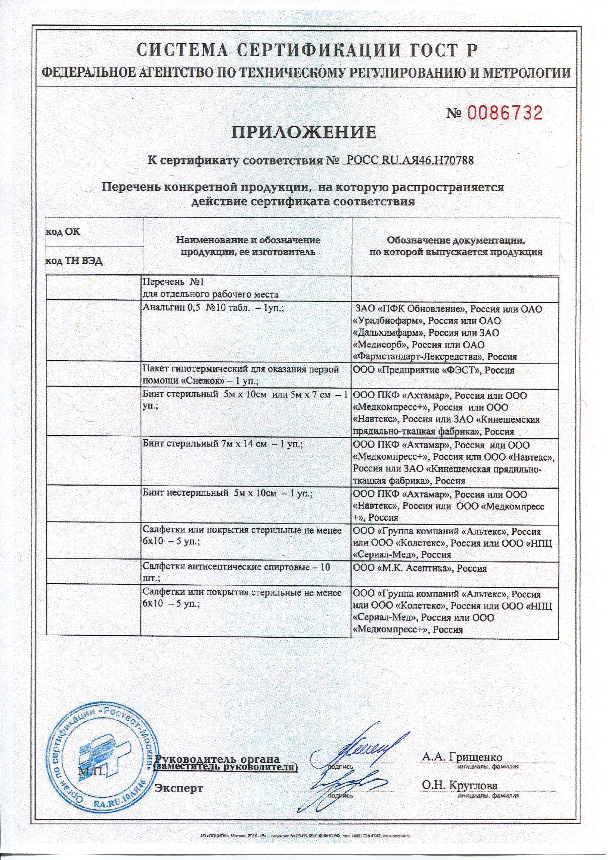 Аптечка для оснащения предприятий, учреждений, производств. Для отдельного рабочего места, кабинета (на 7-10 человек). ТУ 9398-058-10973749-2008 Состав: