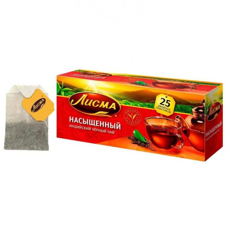 Чай Лисма Насыщенный черный 25 пакетиков — насыщенный индийский черный чай в пакетиках по 1,8 грамма с ярлыком. Вкус, знакомый с детства.