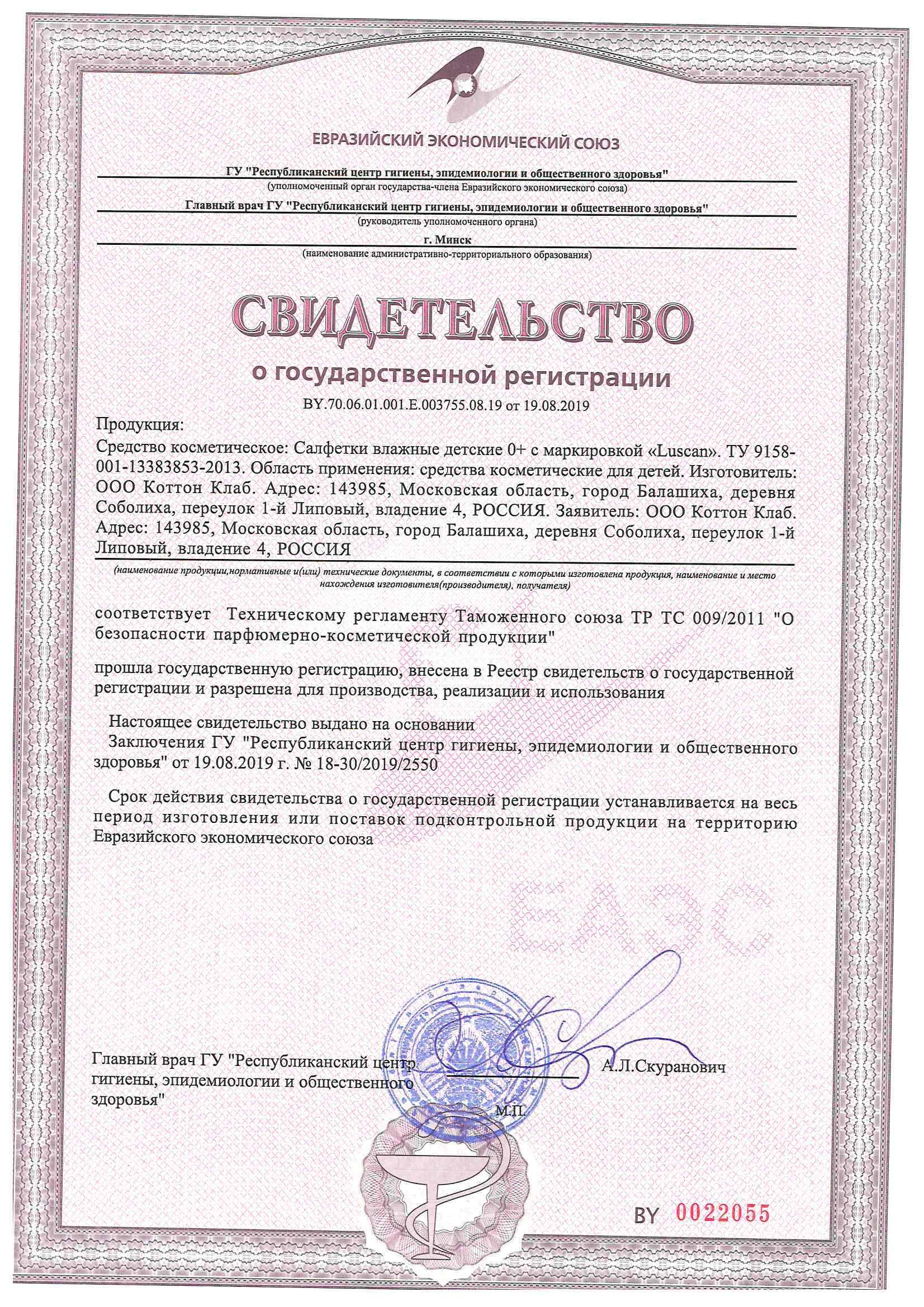 Сертификат на товар - Влажные салфетки детские Luscan 15 штук в упаковке