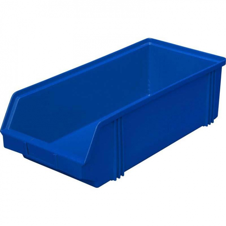 Ящик (лоток) универсальный штабелируемый синего цвета. Внешние размеры ящика (ДxШxВ) — 500×230×150 мм. Внутренние размеры ящика (ДxШxВ) — 420×200×144 мм. Объем — 12,1 л. Вес — 0,8 кг. Ящики производятся из морозостойкого полипропилена, имеют сплошные стенки и дно. Устойчиво штабелируемые складские ящики также можно крепить на навесном стеллаже благодаря специальным зацепам, расположенным на задней стенке. Имеют карман для бирок для удобства сортировки содержимого.
