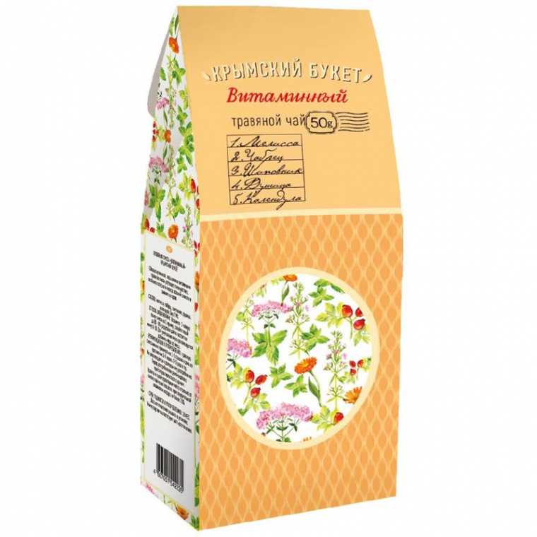 Сбалансированный, насыщенный витаминами травяной чай ТМ Крымский букет «Витаминный» 50 г улучшает самочувствие, особенно полезен в периоды межсезонья и зимних холодов.