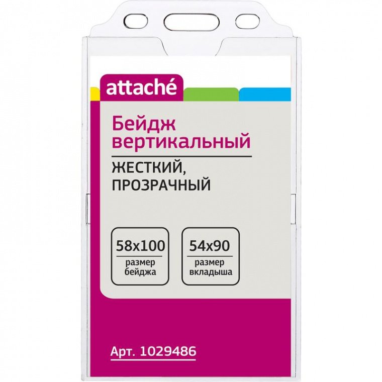 Бейдж Attache вертикальный, выполнен из прозрачного полистирена. Размер бейджа — 58×100 мм, размер вкладыша — 54×90 мм. Подходит для ношения именных карточек и пропусков на держателе с рулеткой или тесьмой. Предназначен для использования на семинарах, конференциях, выставках и других мероприятиях. Поставляется в упаковке по 10 штук.