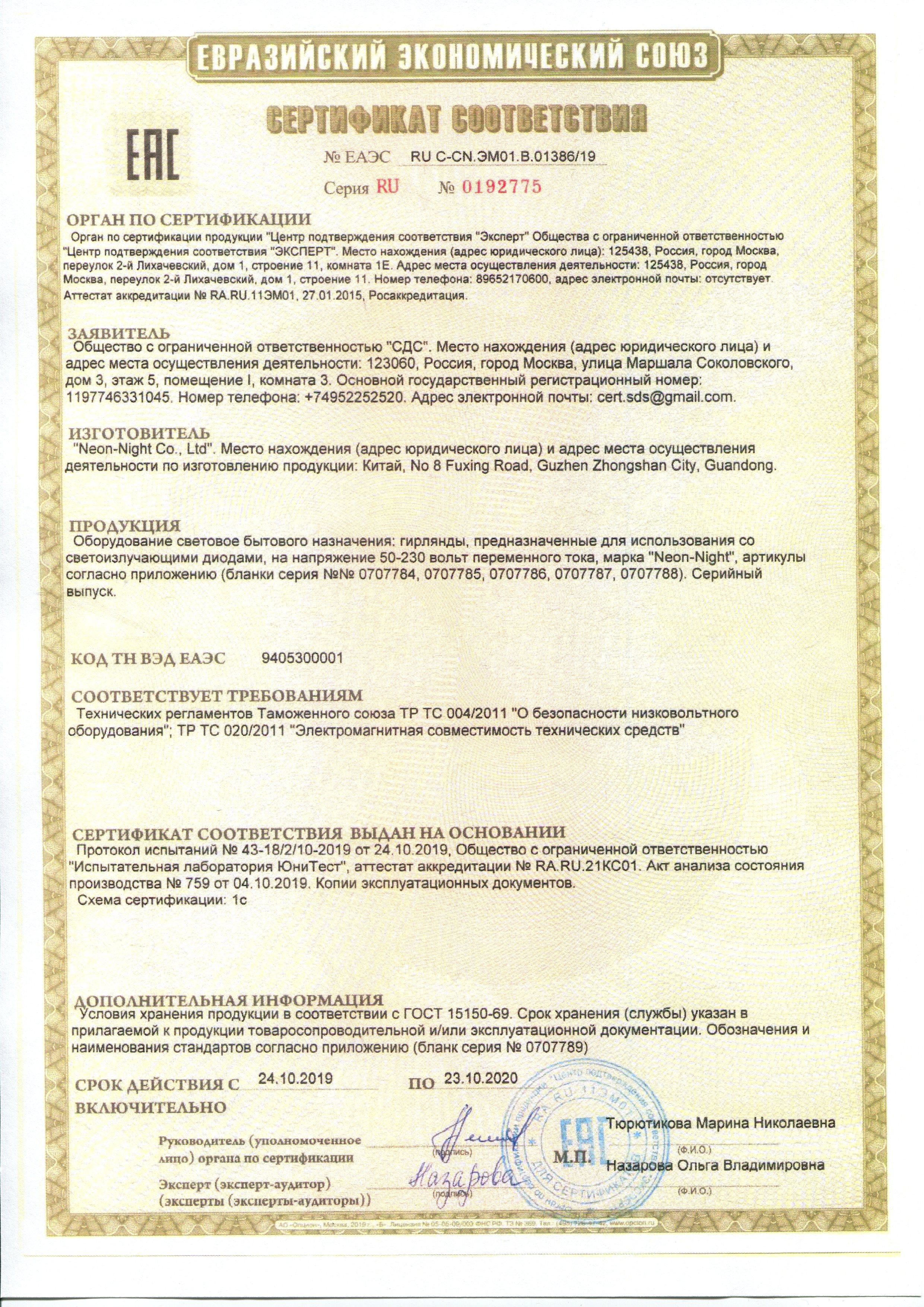 Сертификат на товар - Гирлянда светодиодная Neon-Night Занавес бахрома холодный белый свет 96 светодиодов (1.5x1 м)