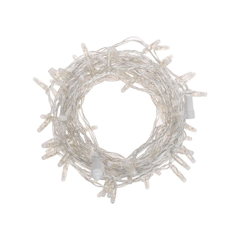 Гирлянда Нить, предназначенная для размещения вне помещения, представляет собой гибкий горизонтальный прозрачный шнур-шину, к которому через определенные промежутки крепятся вертикальные нити разной длины со светодиодами. Гирлянда послужить эффектным и оригинальным решением при декорировании карнизов домов, арок, фасадов зданий, витрин магазинов, а также стать элементом декора внутренних интерьеров помещений. Благодаря использованию в гирлянде светодиодов, ее отличительной особенностью является превосходная яркость и низкое энергопотребление по сравнению с лампами накаливания. Гирлянда предназначена для использования как внутри помещения, так и снаружи. Гирлянда выполнена в виде линии расположенными на них 100 светодиодами. Светодиоды более надежны, экономны и не нагреваются. Можно соединять до 50 м. Режимы свечения: 1. Мерцание. Технические характеристики: - Температурный режим: от -20 до 40 градусов C; - Длина гирлянды: 10 м; - Длина шнура: 1.5 м; - Питание: от сети 24 В. Товар имеет степень защиты IP65 - корпус с полной защитой от проникновения пыли и защита от сильных струй воды. Внимание! Элемент питания не идет в комплекте.