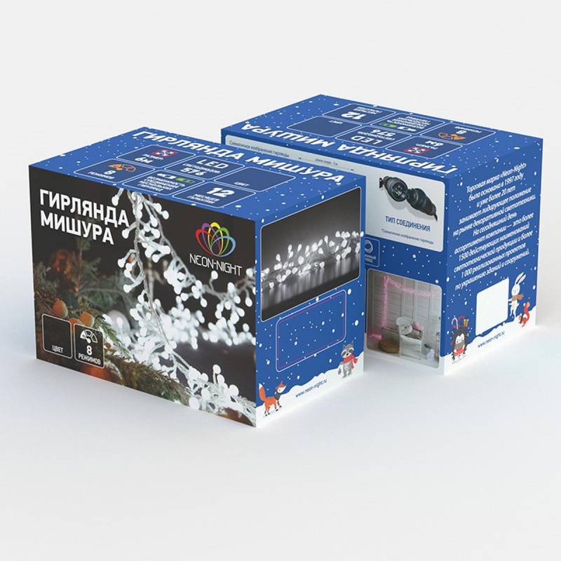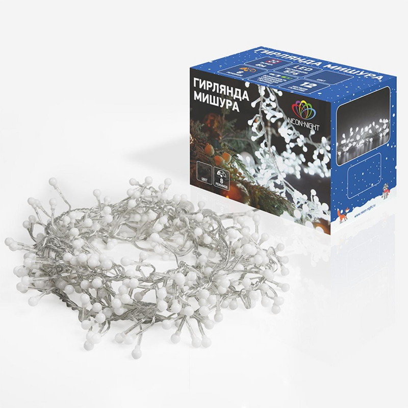 Гирлянда Мишура длиной 6 метров заменит традиционную елочную мишуру из фольги и станет по-настоящему эффектным украшением, привлекающим внимание к главному символу Нового года. 576 диодов, излучающих белый свет, расположены на кабеле из прозрачного ПВХ. Можно соединить до 10 гирлянд между собой и получить световой декор необходимой длины. Условия эксплуатации предполагают использование изделия в интерьере и сухих отапливаемых помещениях. За смену светодинамических эффектов отвечает контроллер с 8 режимами. Для подключения в розетку предусмотрен трехметровый питающий шнур. Товар имеет степень защиты IP20 - защита корпуса от проникновения частиц диаметром 12.5 мм и более, без защиты от воды или брызг.
