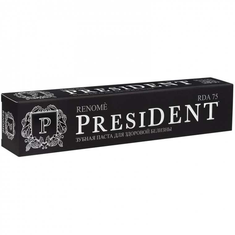 Зубная паста President Renome для здоровой белизны. Показатель абразивности: 75 RDA. Безопасно и эффективно удаляет налет благодаря сферолитам Syloblanc. Очищает от налета, оказывает профилактику появления зубного камня, освежает дыхание.