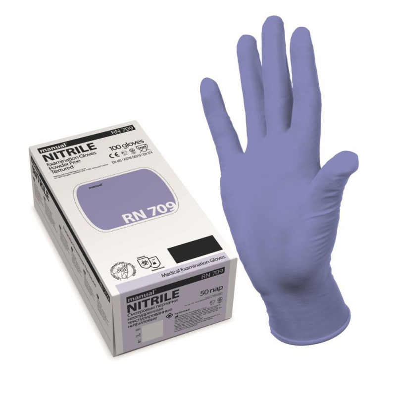 Перчатки мед.смотров. нитрил., нестер, MANUAL RN 709,707 (M) 50пар