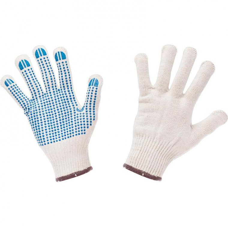 Универсальные рабочие перчатки хб с покрытием ПВХ предназначены для защиты рук от мелких механических повреждений и общих производственных загрязнений. Рабочие перчатки изготовлены из хлопчатобумажной пряжи с покрытием из поливинилхлорида с нанесением рисунка на внутреннюю сторону перчатки. Покрытие ПВХ помогает обеспечить плотный захват и предотвращает соскальзывание детали. Трикотажные перчатки с манжетой на резинке обеспечивают плотное прилегание перчатки к руке. Оптимальны для складских, садовых и ремонтных работ. Положите их в автомобиль и, в случае необходимости, вы защитите свои руки от травм и грязи. Основа: 60% хлопок, 40% полиэфир; вес пряжи — 116,8 текс. Материал и рисунок покрытия: ПВХ, точка. Соответствует ТР ТС 019/2011. Количество пар в упаковке: 5. Количество упаковок в транспортном коробе: 40. Размер: 9.