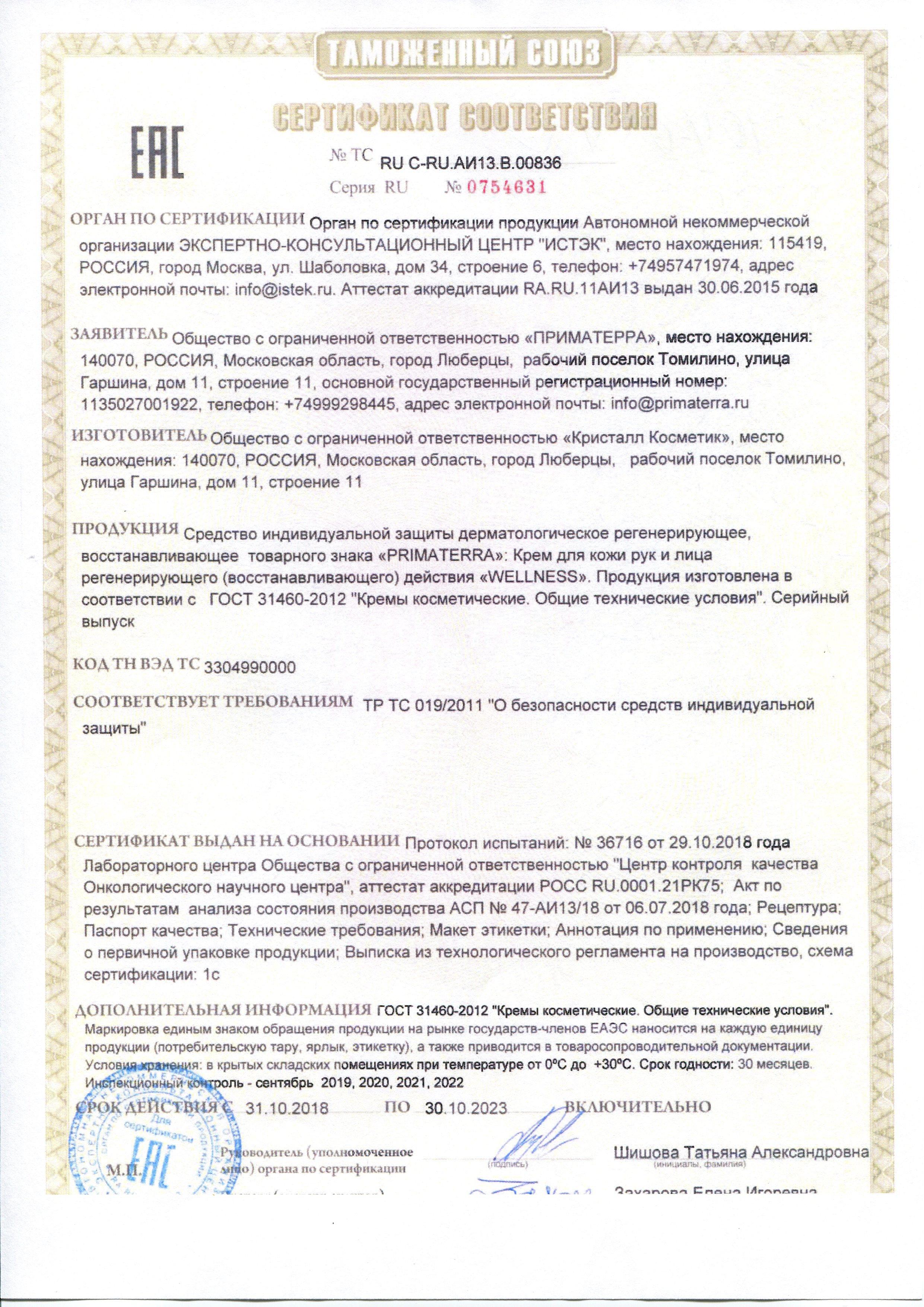 Крем регенерирующий Primaterra Wellness для рук 100 мл предназначен для глубокого ухода за кожей после профессиональных стрессовых воздействий и негативного влияния окружающей среды.