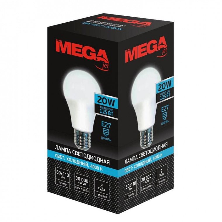 Светодиодная лампа Mega 20W E27 4000k излучает нейтральный белый