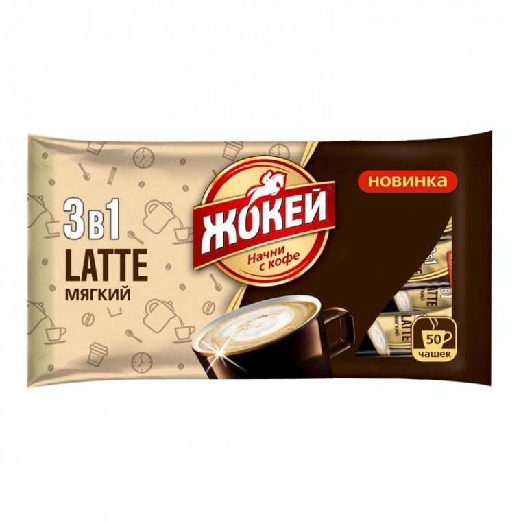 Кофе порционный «Жокей 3 в 1. Мягкий» (50 пакетиков в упаковке) — это растворимый кофе с сахаром и сливками. Настоящий кофе-латте с выраженным молочным вкусом.