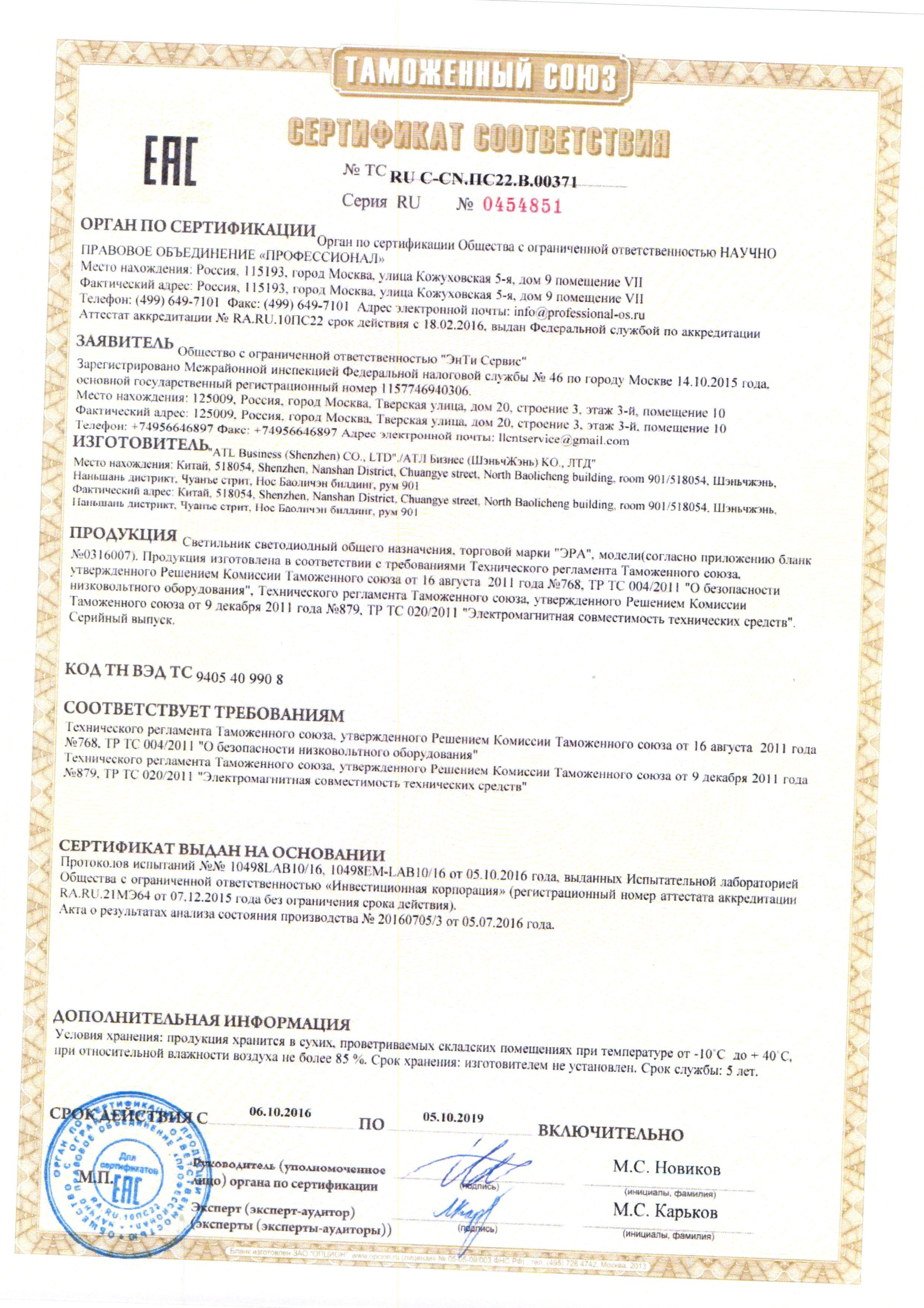 Сертификат на товар - Светильник настольный Эра NLED-476-10W-BK черный