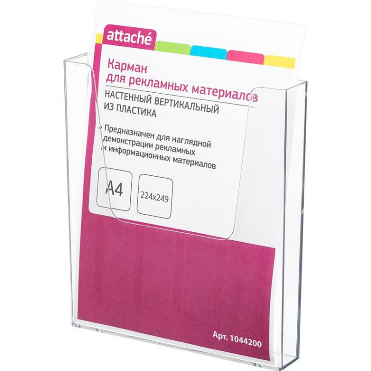 Карман настеннный Attache прозрачный. Размер: высота 24.9 см, ширина 22.4 см, глубина 4 см. Изготовлена из литьевого полистирола. Формат: А4. Вид: настенный, настольный. 2 штуки в упаковке.