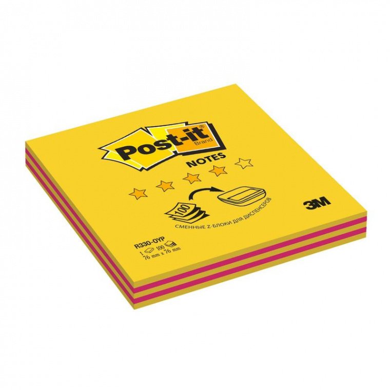 Стикеры Z-сложения Post-it Original подойдут для установки в любые Z-диспенсеры Post-it. Формат 76×76 мм. Двухцветные, в блоке 100 листов, упаковано в пленку. Длина клейкой стороны 76 мм. Уникальная клеевая система Post-it с клейкостью 23 Н/м обеспечивает крепление стикеров к бумаге любого типа, а также к большинству поверхностей и предметов. Наличие праймера гарантирует бесследное отклеивание и многократное переклеивание. Специальная бумага с плотностью 70 г/кв.м имеет особое покрытие, благодаря которому листочки легко отделяются от блока, меньше закручиваются, на них можно делать надписи любыми пишущими принадлежностями в любом месте. Особых условий хранения не требует, сертификации не подлежит, срок годности не ограничен. Бумага на 100% произведена из восстанавливаемых лесов (Сертификаты SFI и PEFC). Сделано в России.