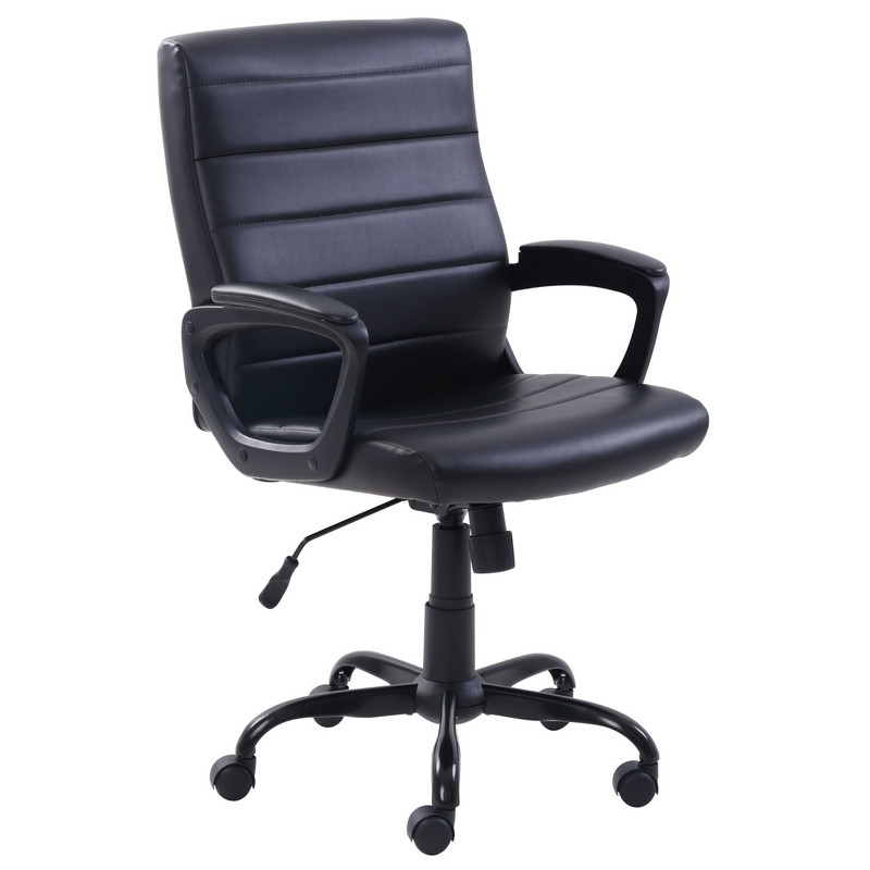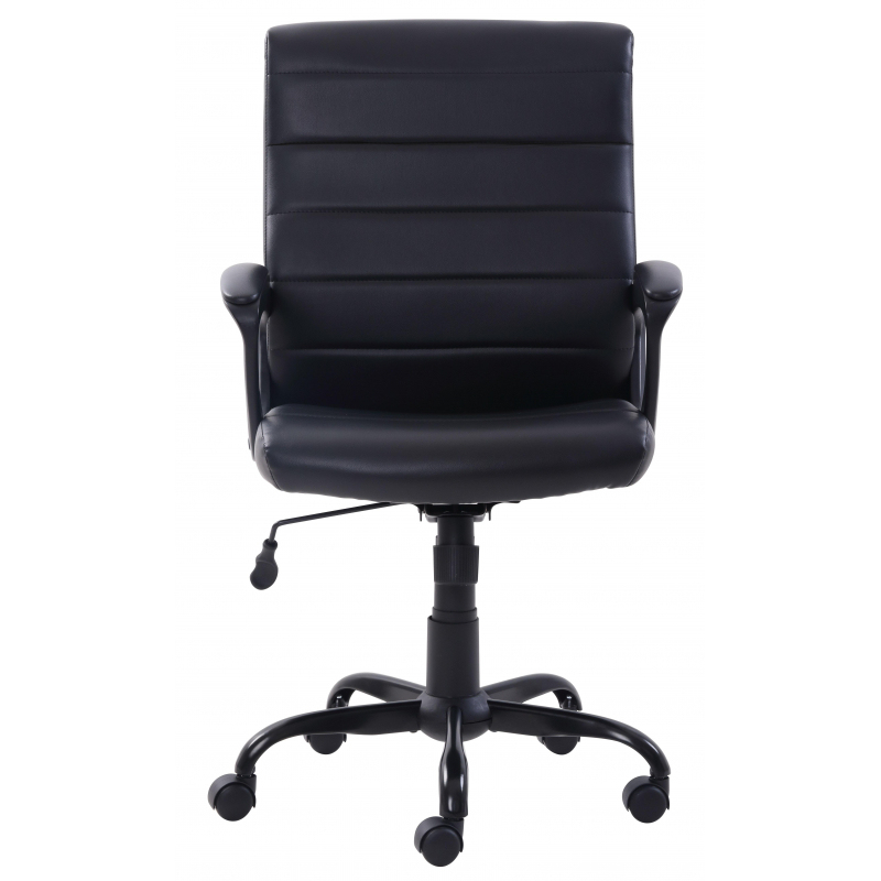 Кресло для руководителя Easy Chair 581 TR обито рециклированной кожей черного цвета. Крестовина изготовлена из металла. Подлокотники - пластик с мягкими накладками. Механизм Top Gun позволяет осуществлять свободное качание с фиксацией в рабочем положении. Имеет регулировку по высоте (газлифт). Максимальная статическая нагрузка - 120 кг. Гарантийный срок - 12 месяцев.Изображения товаров на сайте не могут гарантировать точную цветопередачу.