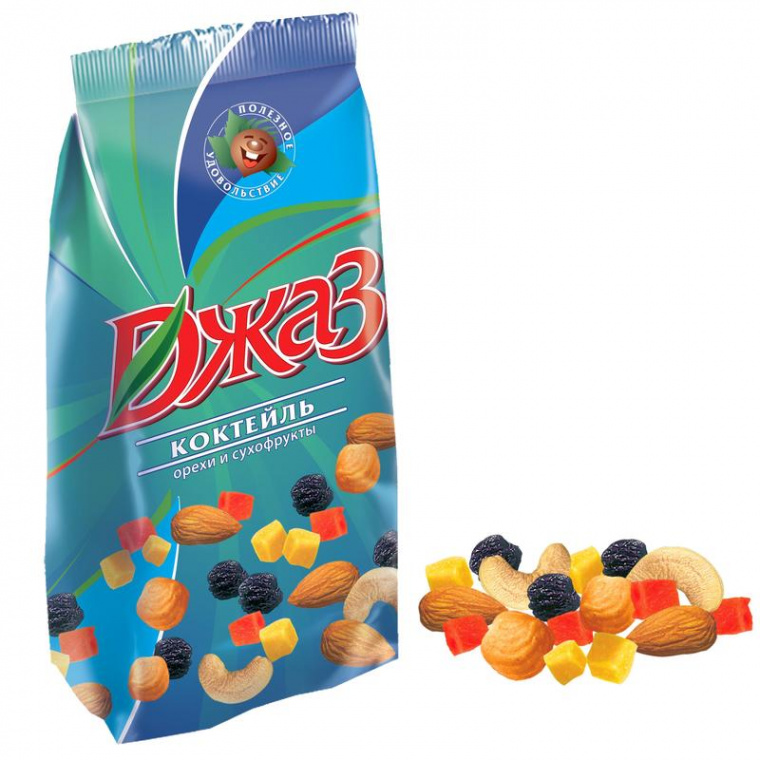 Коктейль «Джаз» — это настоящая ореховая классика! Мы создали его 25 лет назад, и он до сих пор является нашей визитной карточкой и одним из лидеров рынка. Только высококачественные ингредиенты, оптимальное соотношение орехов и сухофруктов в смеси (50/50) и бережная обжарка орехов — это то, за что вы выбираете именно коктейль «Джаз».