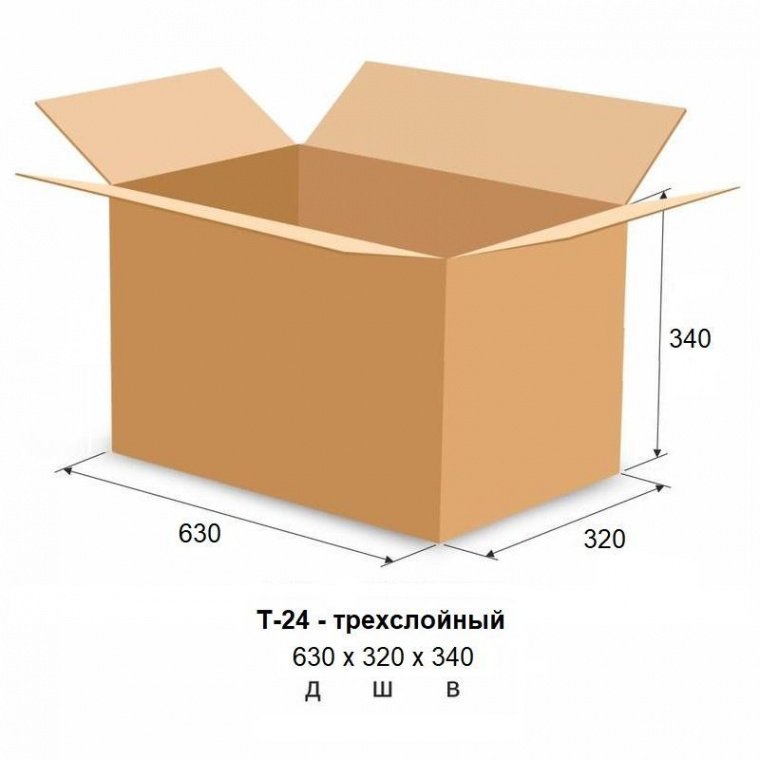 Короб картонный 630×320×340 мм Т-24 20 штук в упаковке Универсальный четырехклапанный короб для упаковывания. Предназначен для упаковывания, хранения и транспортировки различных грузов с защитой от ударов и влаги. Подходит как для упаковки бытовой химии, так и пищевых продуктов. В пустом виде картонный гофрокороб легко и удобно складывается. Прочный, упругий, обладает хорошими амортизирующими свойствами, отлично переносит штабелирование, высокое сопротивление проколам. Легко складывается. Выполнен из трехслойного гофрокартона марки Т-24 бурого цвета. Гофрокартон имеет профиль «В». Размеры (ДxШxВ) — 630×320×340 мм (68,54 литра).