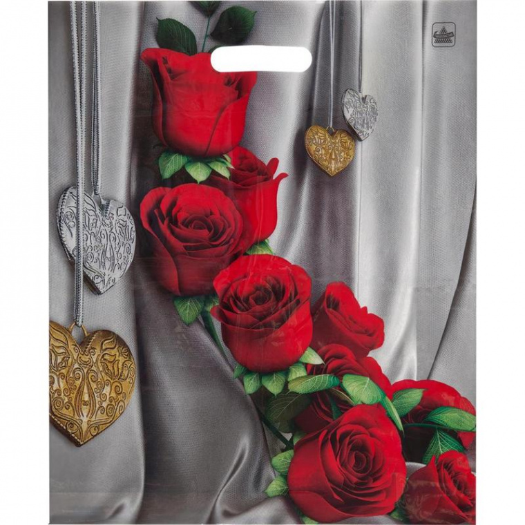 Пакет полиэтиленовый Цветы страсти с вырубной ручкой 45х38 см (50 штук в упаковке)