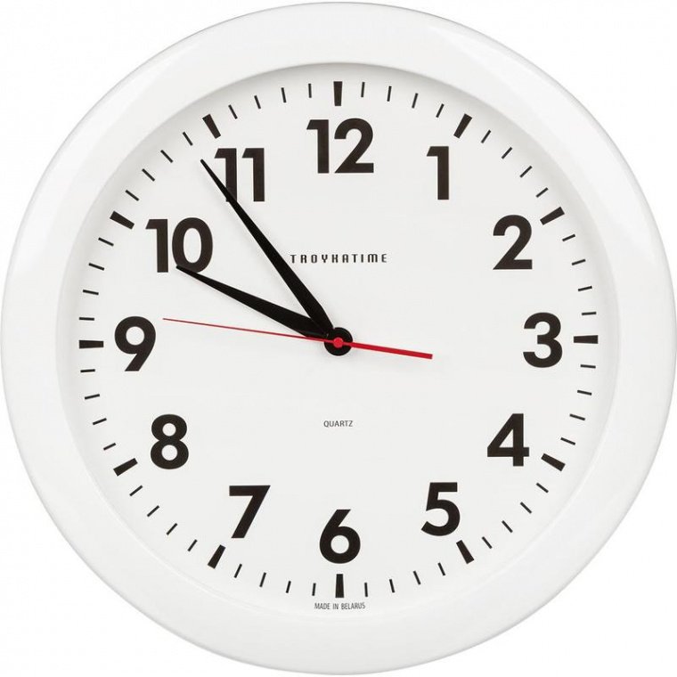Настенные кварцевые часы Troyka 61610611 изготовлены из пластика, прекрасно подойдут под интерьер вашего офиса. Круглые часы имеют три стрелки: часовую, минутную и секундную, циферблат с арабскими цифрами защищен минеральным стеклом. Размеры часов (ШxВxГ): 50×50×5 см.Тип питания: 1 батарейка типа «АА» (входит в комплект).