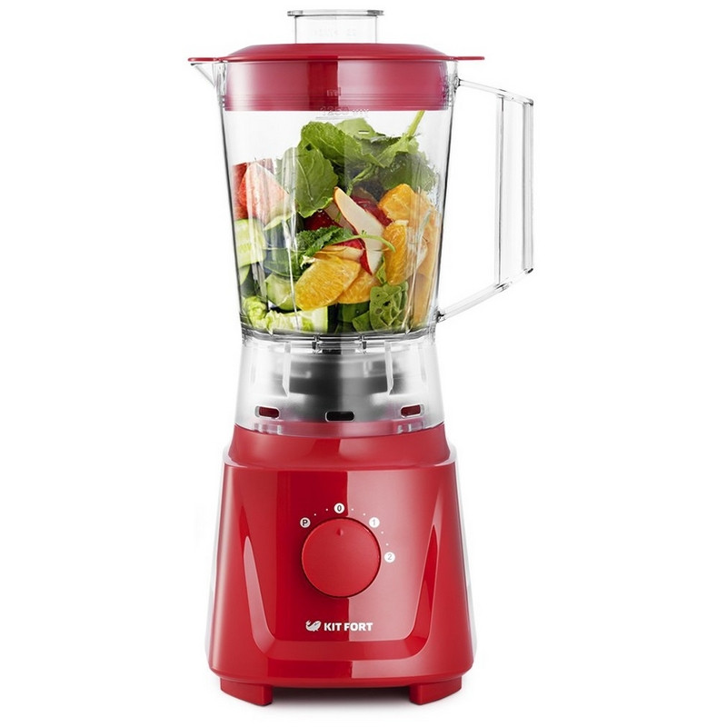 Блендер стационарный Kitfort КТ-1356-2 является оборудованием 'два в одном'. Здесь есть чаша на 1,25 литра для измельчения продуктов, сделанная из пластика с ножами из нержавеющей стали и емкость, где можно молоть кофейный зерна. Она имеет объем в 200 мл и прекрасно справляется с поставленной задачей.Такое современное устройство, как блендер выполнено в ярком красном цвете. На корпусе имеется регулятор, благодаря которому можно выставить два варианта скорости, либо импульсный режим. Скорость вращения ножей 23 000 оборотов в минуту, мощность прибора 600 Вт. Он работает от обыкновенной электросети и имеет шнур 0,94 м длиной. Владелец этого устройства сможет делать коктейли, смузи и пюре, но оно не рассчитано на колку льда.