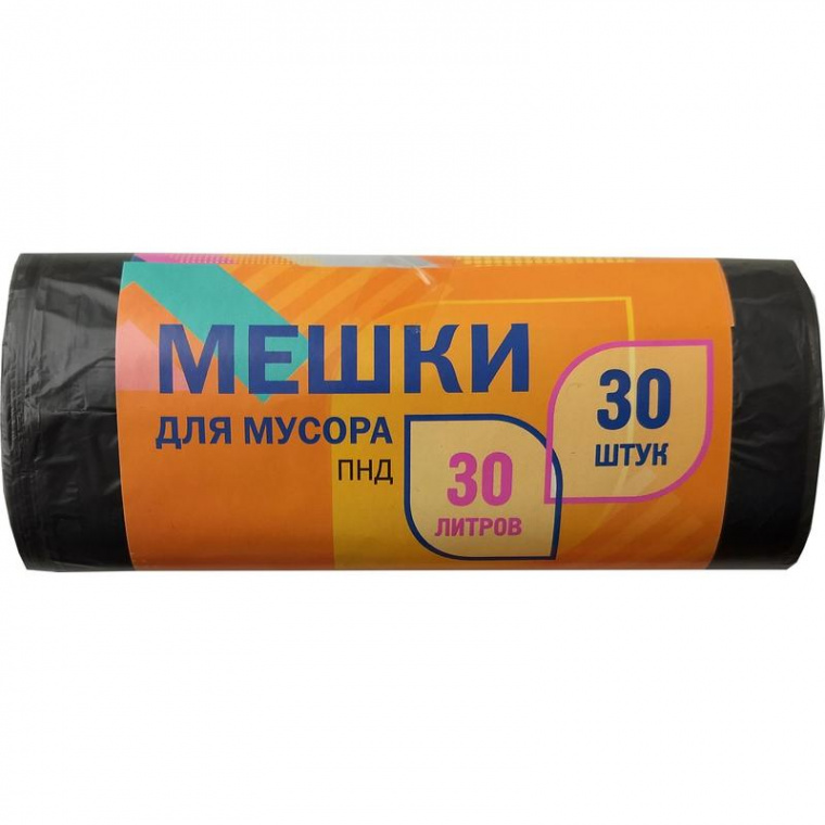 Мешки для мусора на 30 л черные (ПНД, 5 мкм, в рулоне 30 штук, 47×50 см)