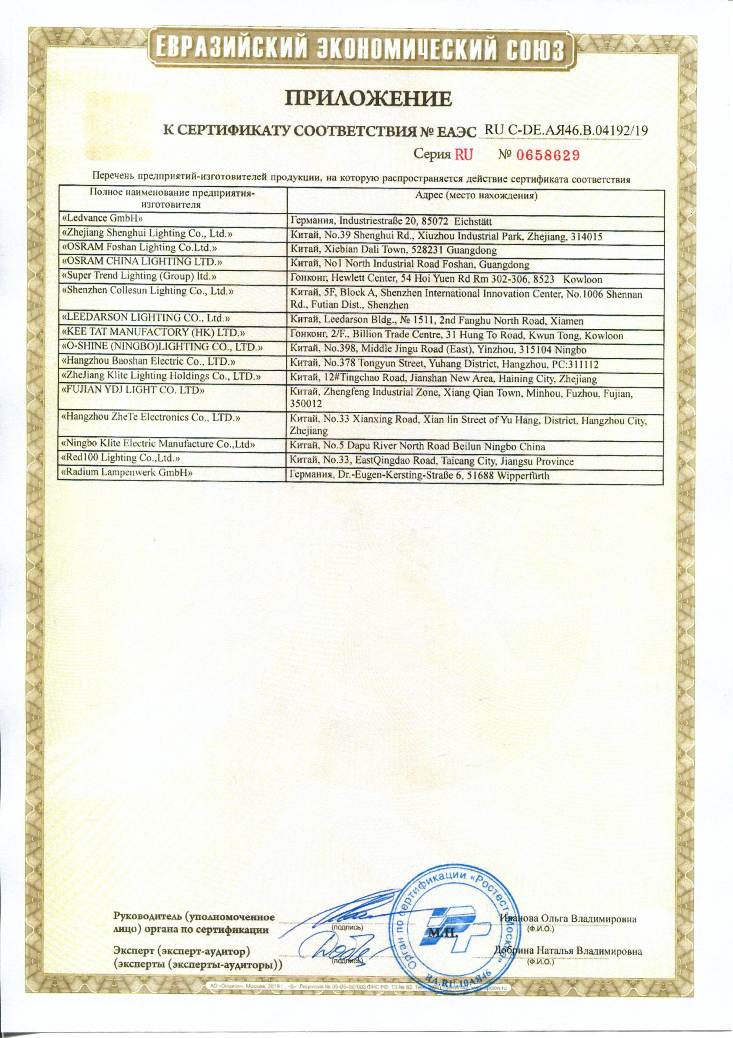 Средний срок службы: 15 000 ч (15 лет при 2,7 ч горения в день).