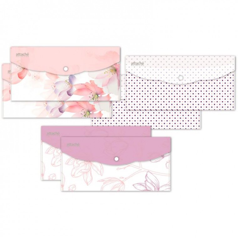 Папка-конверт на кнопке Attache Selection Dreams формата евро. Папка-уголок сделана из экологичного полипропилена. Размер папки — 230×115 мм. 3 оттенка в ассортименте. Плотность: 180 мкм. В упаковке 6 штук. Папка используется для хранения документов.