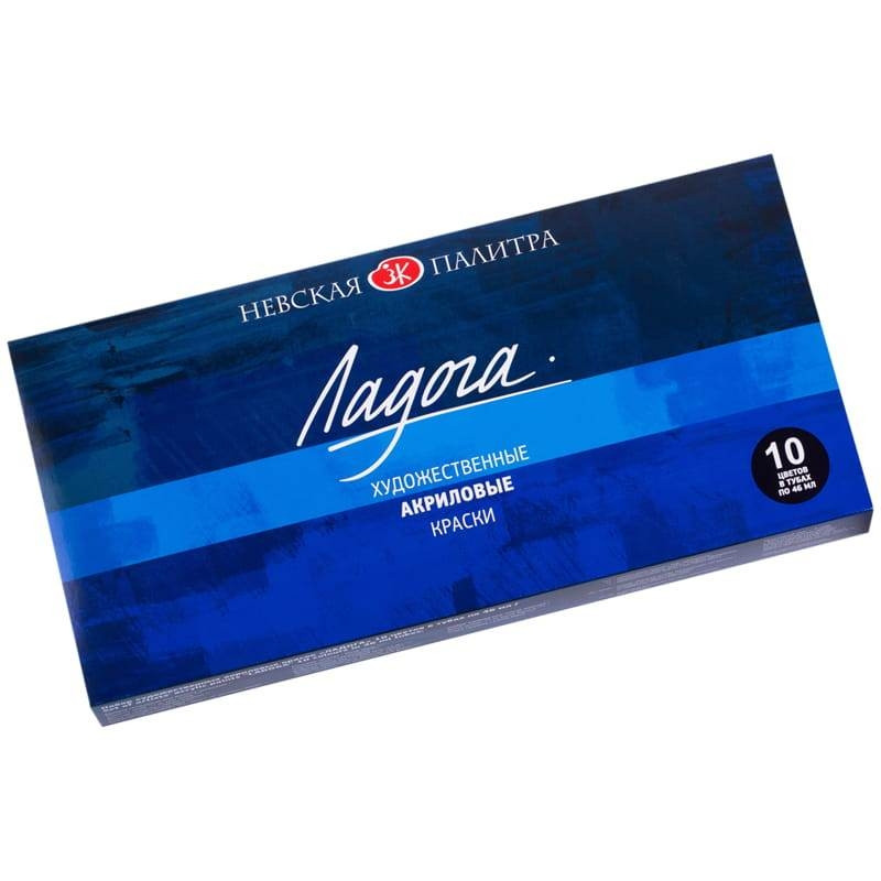 Краски акриловые Ладога производятся на основе качественных пигментов акриловой дисперсии. Благодаря легкости в работе, универсальности применения и прекрасной адгезии используются при работе почти на любой поверхности (бумаге, картоне, холсте, дереве, коже). При высыхании образуют матовую эластичную несмываемую пленку.Состав набора: белила титановые или белила цинковые, желтая средняя, охра светлая, красная или киноварь (А), розовая темная, ультрамарин, кобальт синий (А), зеленая средняя или зеленая "ФЦ", умбра жженая или сиена жженая, сажа газовая. Размер упаковки: 14х29.5х3.5 см.