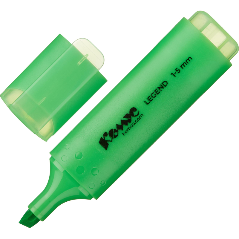 Текстовыделитель Комус Legend зеленый - это отличный выбор для любителей рисования маркерами. Текстовыделитель поможет выделять самое важное в документах или просто тексте, и Вы сможете обработать и не забыть больше полезной информации. Текстовыделитель обладает экономным расходом чернил. Светоустойчивые чернила на водной основе не выцветают даже на открытом солнце и не размазываются в процессе. Чернила не промокают бумагу. Текстовыделитель имеет чернила на водной основе зеленого цвета. Цвет корпуса соответствует цвету чернил. Чернила не имеют запах. Маркер обладает плоской формой корпуса. Колпачок снабжен специальным клипом, с помощью которого можно прикрепить маркер к любой обложке. Скошенный наконечник имеет толщину линии письма от 1 до 5 мм, что обеспечивает удобство при работе с текстом, напечатанным мелким шрифтом, или таблицами.