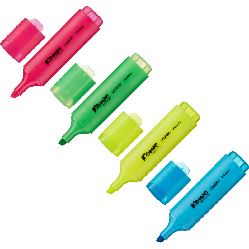 Набор текстовыделителей Комус Legend - это отличный выбор для любителей рисования маркерами. Текстовыделитель поможет выделять самое важное в документах или просто тексте, и Вы сможете обработать и не забыть больше полезной информации. Текстовыделитель обладает экономным расходом чернил. Светоустойчивые чернила на водной основе не выцветают даже на открытом солнце и не размазываются в процессе. Чернила не промокают бумагу. В наборе 4 цвета: желтый, зеленый, розовый, синий. Цвет корпуса соответствует цвету чернил. Чернила не имеют запах. Маркер обладает плоской формой корпуса. Колпачок снабжен специальным клипом, с помощью которого можно прикрепить маркер к любой обложке. Скошенный наконечник имеет толщину линии письма от 1 до 5 мм, что обеспечивает удобство при работе с текстом, напечатанным мелким шрифтом, или таблицами.