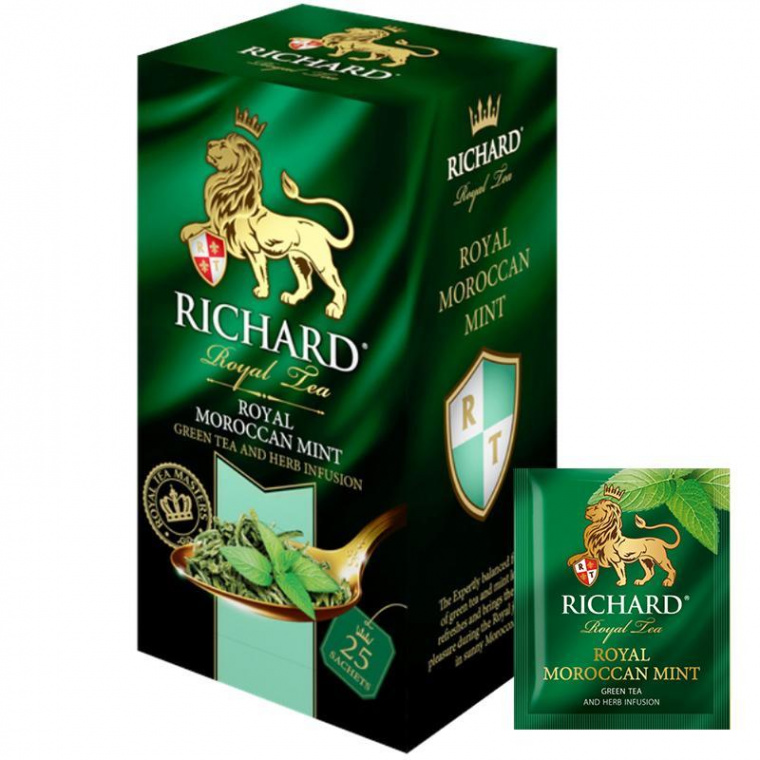 Чай Richard Royal Moroccan Mint зеленый — это байховый чай высшего качества с мятой в пакетиках.