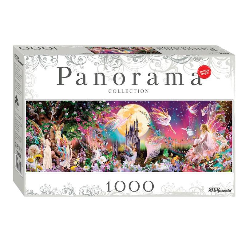 Феи или эльфы - волшебный народец. Они живут в густых зеленых лесах и больше всего любят музыку и танцы. Светлыми лунными ночами водят феи свои хороводы в лесных чащах, на лугах или на перекрестках дорог. Так, взявшись за руки, пляшут они до первых петухов, под звук какого-нибудь однообразного напева. Феи в массе своей добрые и безвредные волшебные существа, но в порыве веселья они могут и подшутить над неосторожным путником. Пазлы совершенствуют внимание и память, тренируют мелкую моторику, а также способствуют развитию образного и логического мышления. Характеристики пазла: - Количество деталей: 1000 шт.; - Размер полотна в сборе: 1000x340 мм; - Стандартные детали пазла: 20x18 мм; - Упаковка: картонная коробка; - Экологически чистые, нетоксичные материалы; - Размер упаковки: 400x55x270 мм.