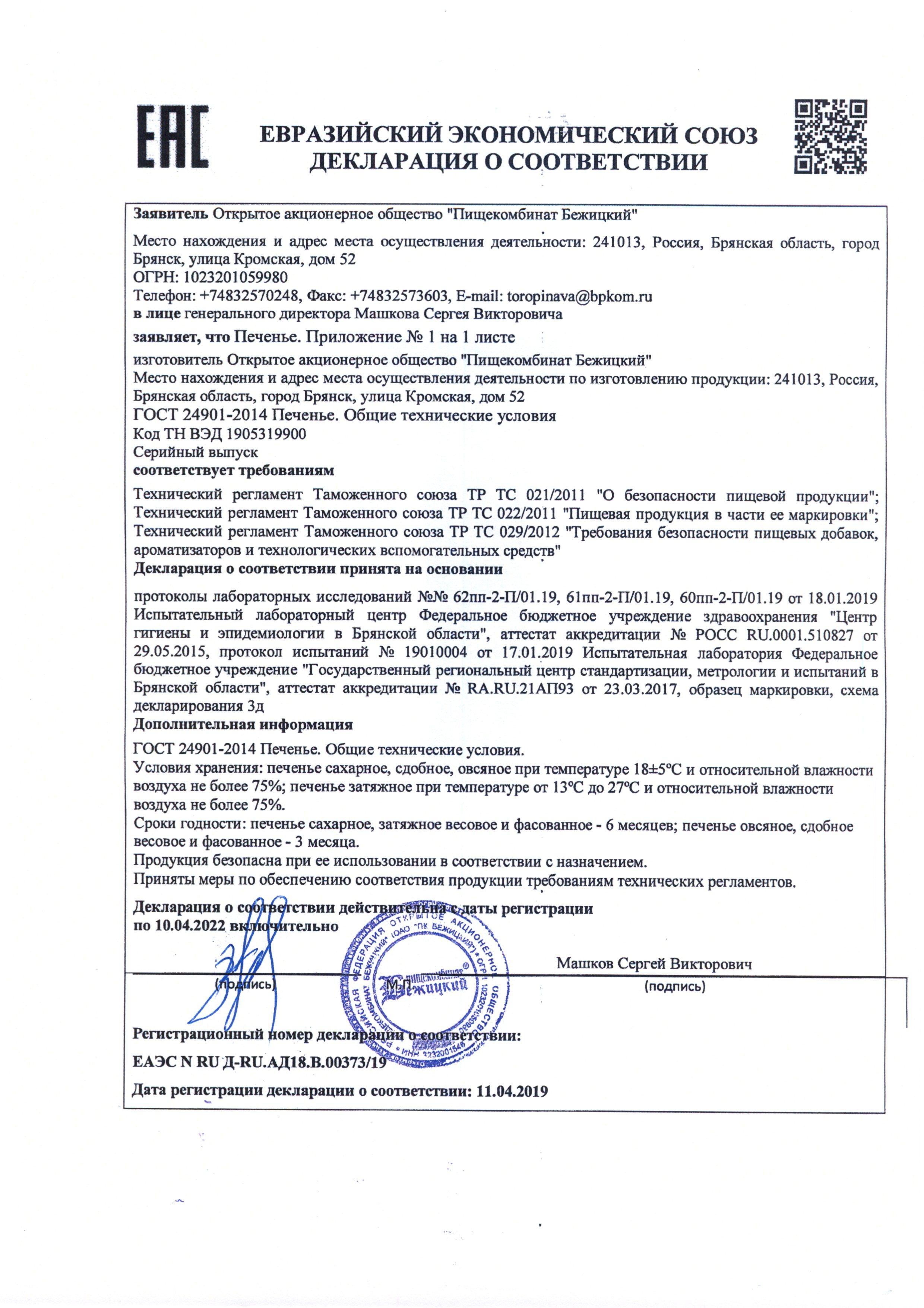 Печенье «Бежицкий» овсяное — это вкусный и полезный десерт. В нем содержатся аминокислоты, необходимые для работы мозга и поддержания мышечного тонуса. В овсяном печенье много клетчатки и минеральных веществ: фосфор, кальций, калий, цинк, железо. Присутствуют и витамины: Е, группа B, каротин.