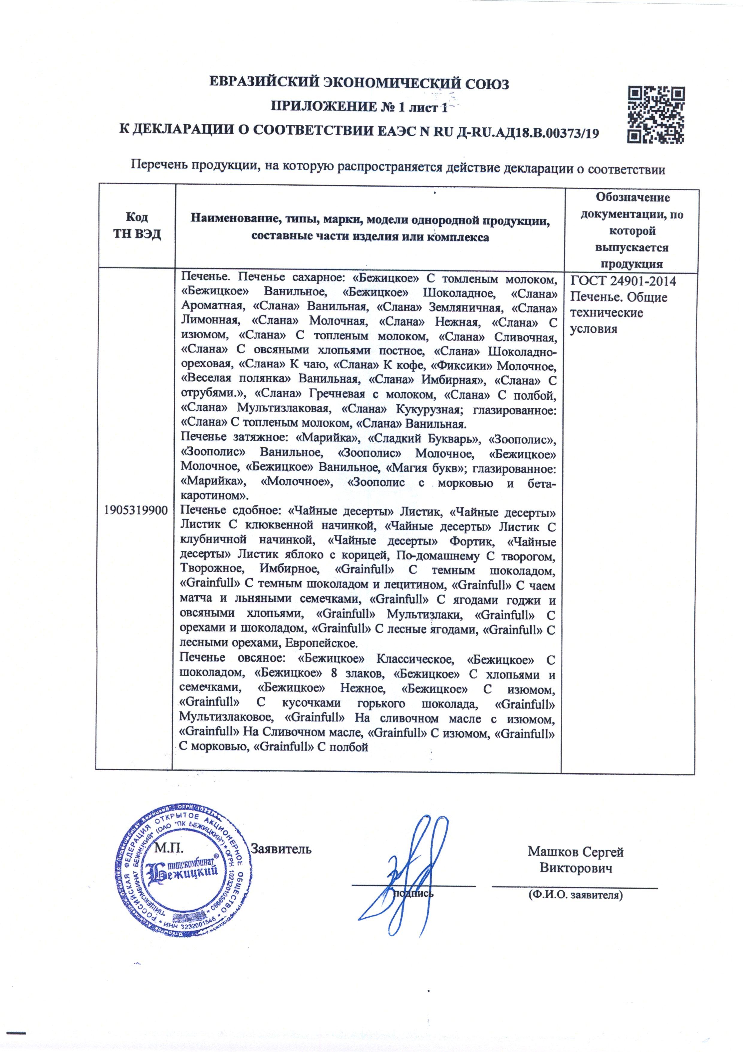 Состав: мука пшеничная, сахар, маргарин (рафинированные дезодорированные растительные масла, вода, соль поваренная пищевая, эмульгаторы: моно- и диглицериды жирных кислот, ароматизатор, регулятор кислотности лимонная кислота, краситель натуральный «Аннато»), мука овсяная, жженка (пережженный сахар), изюм, разрыхлитель (гидрокарбонат натрия), соль поваренная пищевая, агент влагоудерживающий (сорбитовый сироп), корица, ароматизатор «Ваниль».